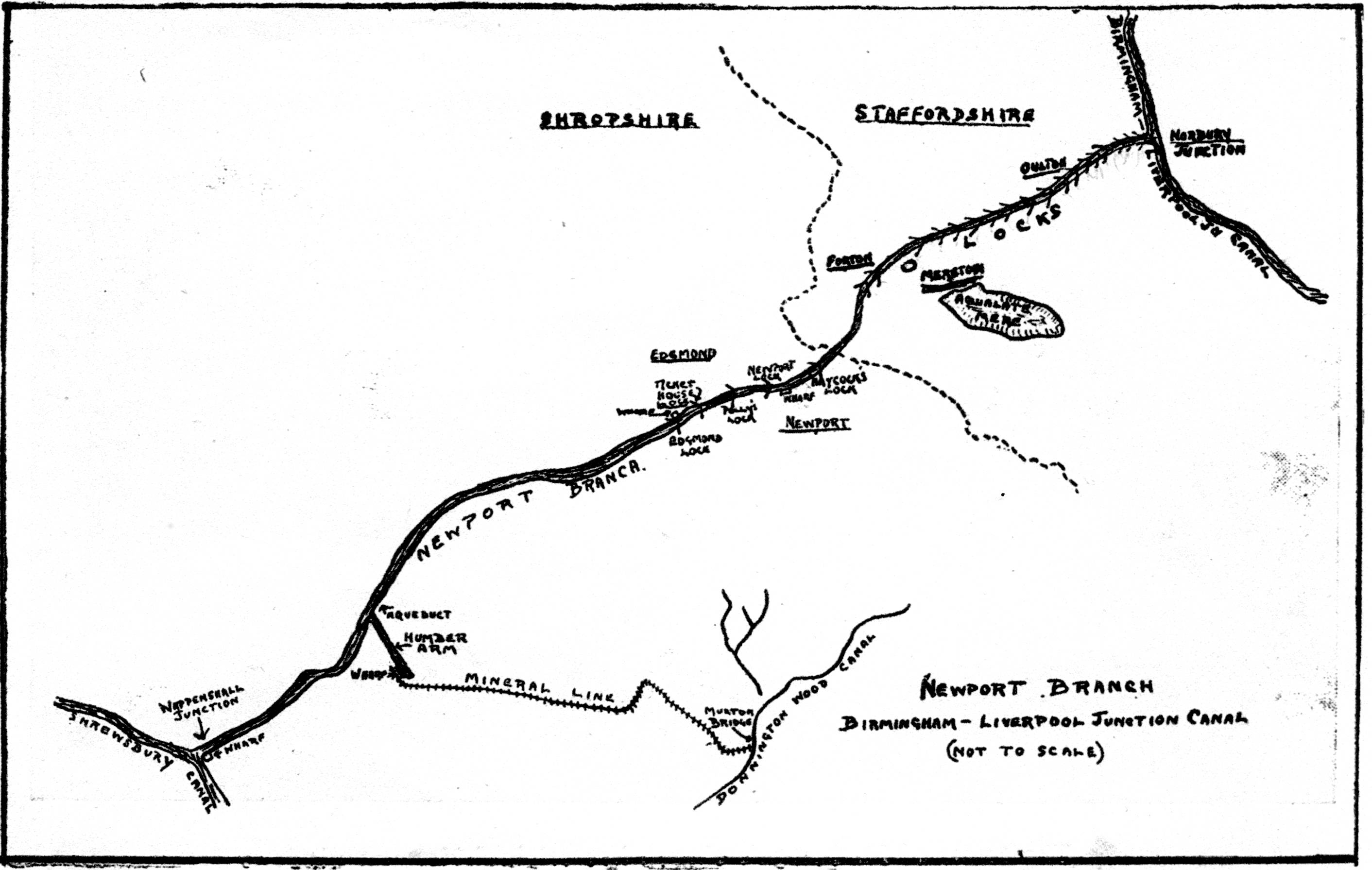 - Date:Ê1962 Description: The Newport branch of the Shropshire Union Canal started at Norbury Junction with a flight of seventeen locks. The Newport branch of the canal was little used after 1920 and closed by Act of Parliament in 1944. It has since been backfilled, but evidence of the locks remains. The photograph was taken from under the bridge at Oulton.